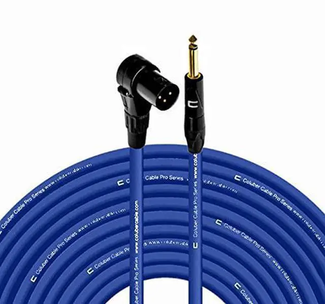 COLUBER CABLE Right Angle XLR Male to 1/4" TS Male - 100 Feet - Blue - Pro 3-Pin Microphone Connector for Powered Speakers, Audio Interface or Mixer for Live Performance & Recording