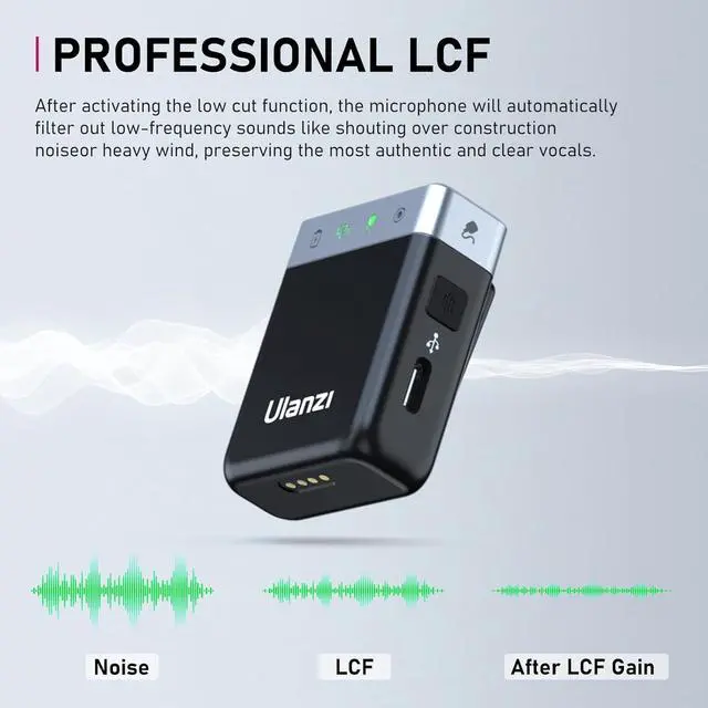 All-in-OneUlanzi AM18 all-in-one Wireless Lavalier Microphone is a professional level mic which is design for content creators, and it features 2.4GHz Wireless Direct Plug and Play, no drive or app required. Ideal microphone for interview, video recording, live streaming, podcasting, vlogging etc. The 3.5mm TRS analog output, USB-C and iOS digital output universal compatibility with cameras, mobile devices and computers