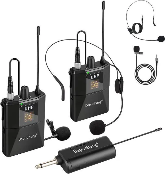 Enhanced Convenience and Flexibility: Our set includes 2 lapel microphones, and 2 headset microphones, freeing your hands in various situations. The bodypack features LCD displays, individual volume controls and ON/MUTE/OFF switch to avoid popping sounds during transfer, ensuring a seamless experience.
