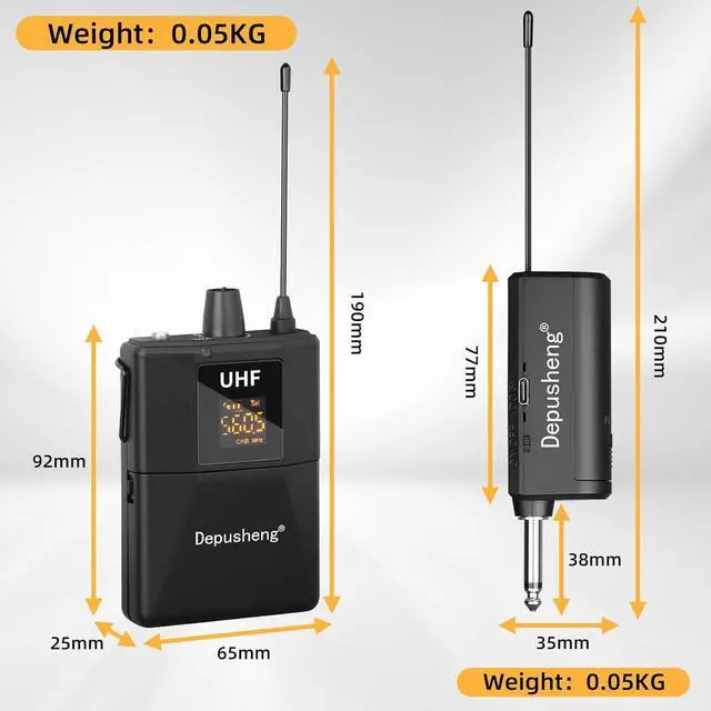 Power Supply: Our receiver is designed to be rechargeable and portable. It takes approximately 2-3 hours to fully charge and offers a usage time of 6-8 hours. And the bodypack operates on 2 AA batteries (not included).