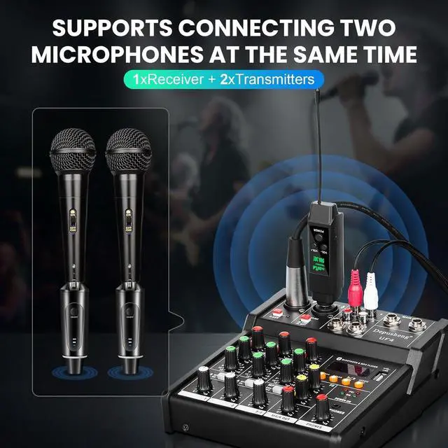 Less Than 6ms Latency-The wireless microphone transmitter receiver set has a broad 20Hz-20kHz frequency response, with less than 6ms latency, no lag, and no signal loss. It can transmit clear and high-fidelity sound signals without noise and delay, allowing you to get clear and high-quality sound from your microphone.