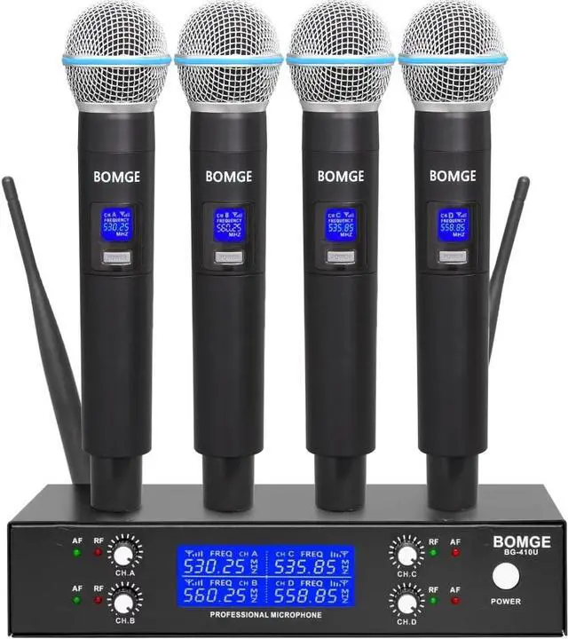 BUILD TO LAST: Sturdy all metal construction for Quad-channel UHF cordless microphone receiver and high sensitivity unidirectional handheld microphones, suitable for heavy use. High quality dynamic cartridge of each microphone is specially engineered to limit feedback and interference, picking up sound smoothly and transmitting sound hassle-free. Deliver clear, robust, optimal true sound
