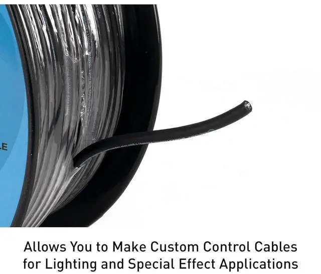 CUSTOMIZABLE SPOOL: With 300 feet of powerful and professional-grade DMX cable, you can fit your cord to your lighting plan rather than the other way around. Use with 3-pin connectors to finish cut ends.