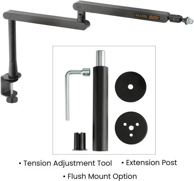 STURDY MOUNTING AND SUPPORT: Equipped with a heavy-duty combo mount including a steel clamp for surfaces up to 2.5 inches thick and a grommet mount for semi-permanent installation. Supports mics, cameras, and lighting up to 4.4 pounds with adjustable tension for optimal control.
