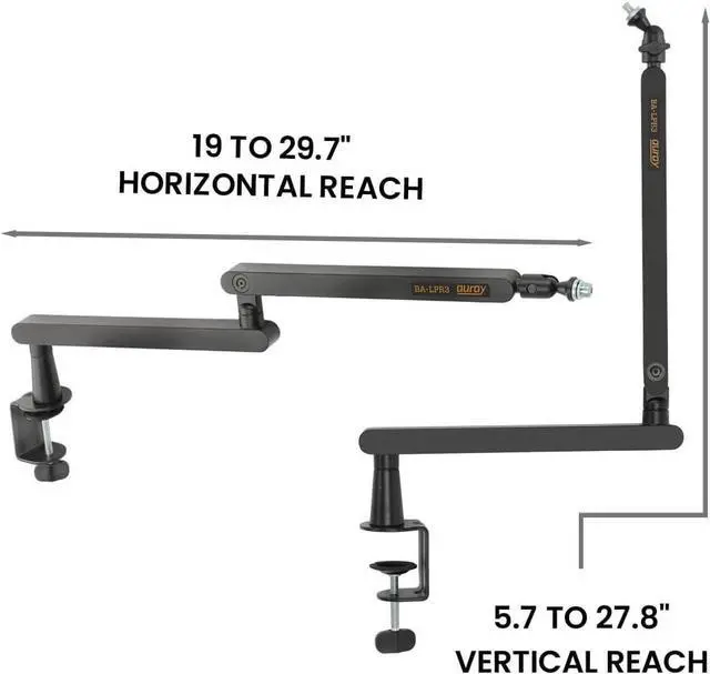 LOW-PROFILE DESIGN: The Auray Low-Profile Broadcast Arm features a sleek, low-profile design that minimizes obstructions, ensuring an unobstructed view of your monitor while using your microphone. Perfect for podcasting, broadcasting, gaming, and voiceovers.