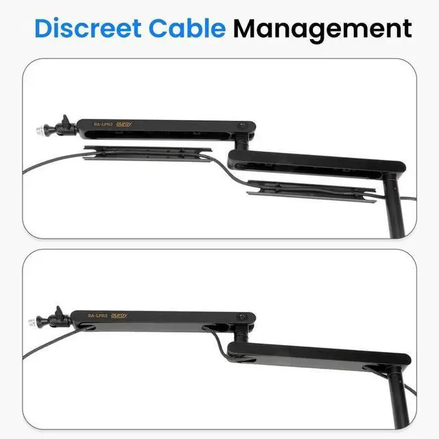 EFFICIENT CABLE MANAGEMENT: Built-in cable management channels keep your microphone cables neatly organized and out of view, contributing to a clean and professional workspace. The aluminum construction ensures durability while remaining lightweight and easy to maneuver.
