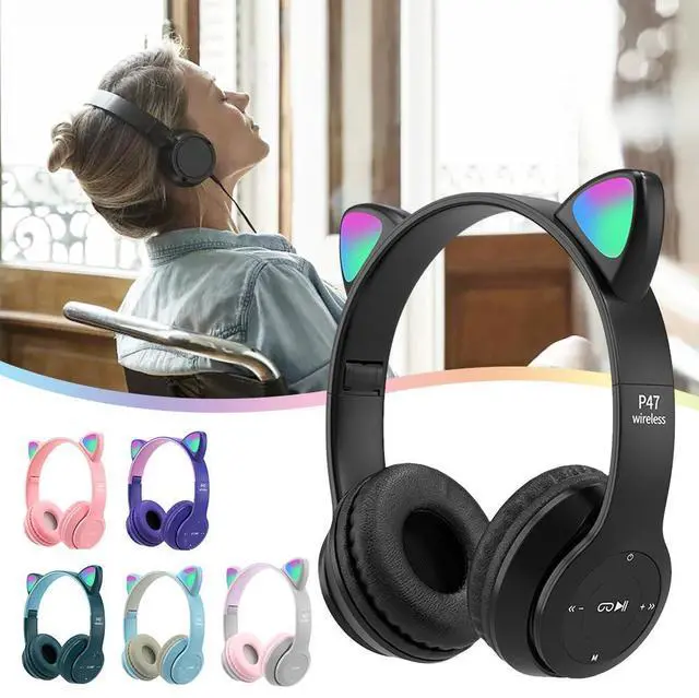 3. Cute Cat Ear with LED Lights: Bluetooth headphones features with a lovely cat ear design and fancy LED lights.