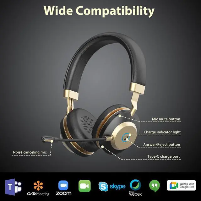 2-in-1 Connection Mode & Wide CompatibilityThis bluetooth headset with microphone is designed for ultimate ease of use, employing an advanced 2-in-1 connection method (USB Dongle, Bluetooth) to ensure superior operational flexibility. It is compatible with Zoom, Microsoft Teams, Google Meet, and many other major communication platforms, seamlessly integrating into your workflow.