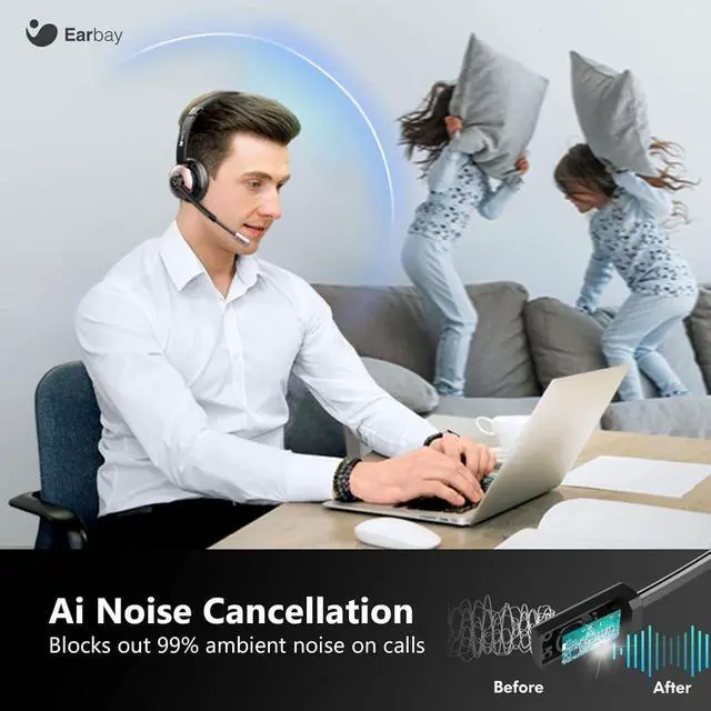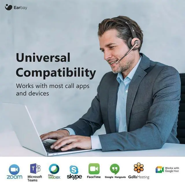 Dual Device ConnectivityThe headset with microphone for pc can be paired with 2 devices at the same time effortlessly, also widely compatible with most computers, laptops, desktops, cell phones and tablets. Earbay wireless USB headset works with many voice applications including: Zoom, Skype, Teams and more, designed for remote work, office, meetings, trucker driver, classroom and call center, etc.