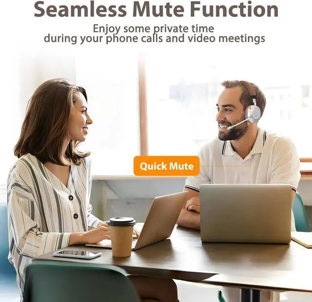 AI Noise Cancellation & Instant Mute Our wireless headset come with cutting-edge ENC technology (Environmental Noise Cancellation). It pre-calculates the frequency bands of ambient noise to block out most background sounds (like kids crying, dogs barking, TV chatter...), ensuring every call is crystal clear, perfect for working from home! Our wireless headset with microphone feature an easy one-touch mute button, allowing you to seamlessly manage your calls, safeguard your privacy, and make every interaction count.