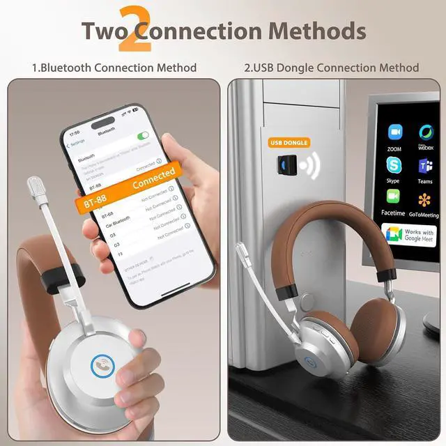 Advanced Bluetooth 5.3 Technology Thanks to the advanced Bluetooth 5.3 in these headset with mic, you can count on a stable connection with your devices. Compared to Bluetooth 5.2, Bluetooth 5.3 offers lower latency, better resistance to interference, and lower power consumption. It ensures fast, easy pairing and delivers a strong, reliable connection up to 49ft/15m away from your device. Say goodbye to drops and disconnects, and keep every conversation with your clients smooth and professional, boosting your productivity. These headset wireless work with all the major communication platforms like Skype, Zoom, Teams, and more, so you can enjoy seamless calls anytime, anywhere.