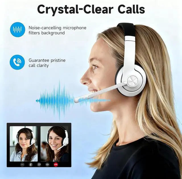 Crystal-Clear Calls with Noise-Cancelling Mic These wireless headse effectively block office chatter, keyboard clicks, and background noisemaking them ideal for call centers, remote work, or Zoom meetings.