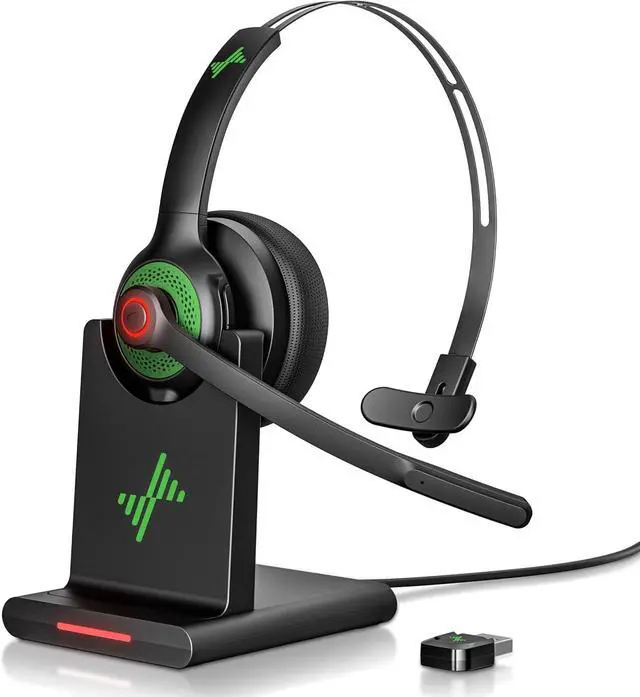 Wireless Headset with Mic for Work, Clear Call, Bluetooth 5.2 Headphones with USB Dongle & Mic Mute Function, Special Charging Base, Applicable to PC, Laptop, Phone, Android, Zoom, Office