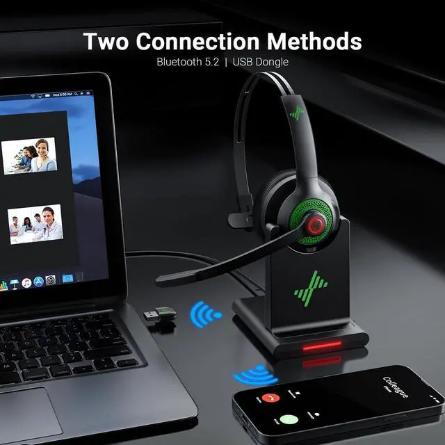 [The connection is very stable];Equipped with Bluetooth 5.2, this office headset guarantees robust, uninterrupted connectivitykey for nonstop work communication. Even in busy offices crowded with wireless devices, it maintains a steady link to your PC, laptop, or phone, virtually eliminating dropouts or signal glitches.