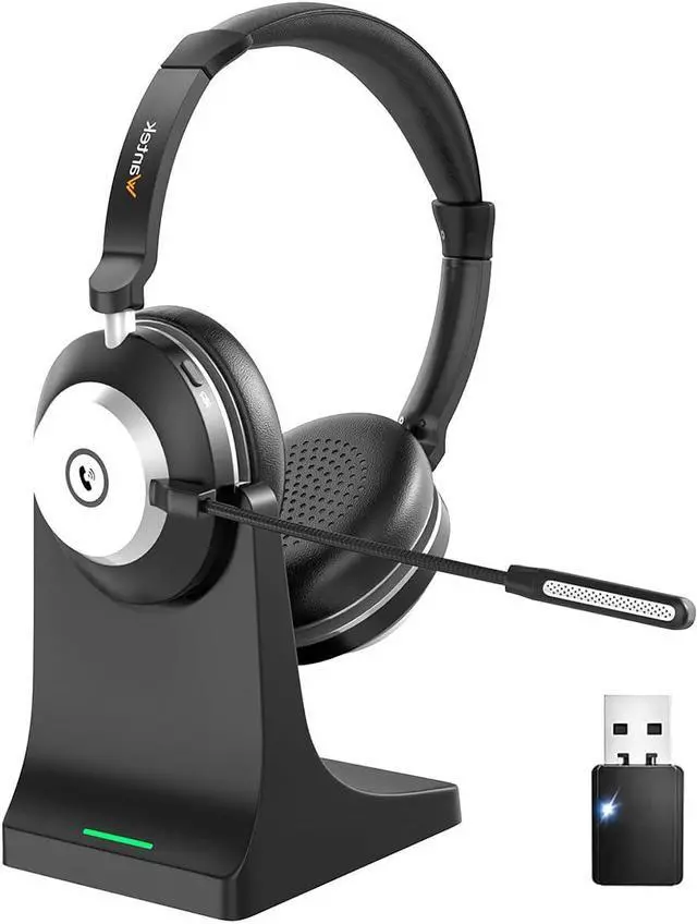 Wireless Headset with Mic for Work, Bluetooth Headset with Microphone (Noise Cancelling & Mute Button), Wireless Headphones with Mic for Work from Home/Office/PC/Call Center/Computer/Laptop/Teams/Zoom