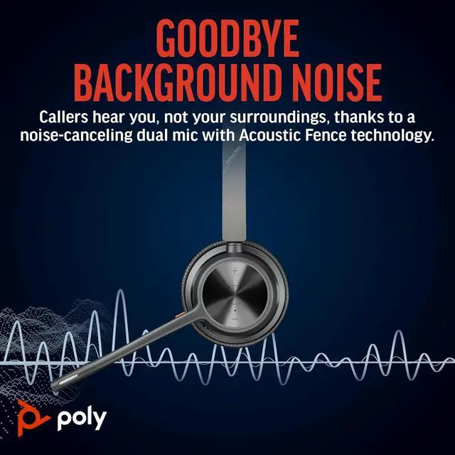 CALLERS HEAR YOU, NOT BACKGROUND NOISE. Be heard, not your background, using wireless headset with mic for work. The noise-canceling dual mic with HP Poly Acoustic Fence filters distractions so callers hear you, even in busy offices or noisy areas