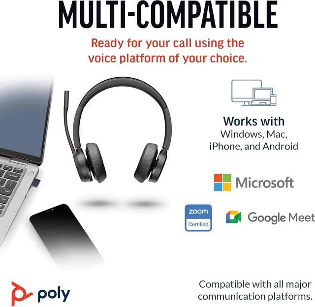 CALLERS HEAR YOU, NOT BACKGROUND NOISE. Be heard, not your background, using wireless headset with mic for work. The noise-canceling dual mic with HP Poly Acoustic Fence filters distractions so callers hear you, even in busy offices or noisy areas