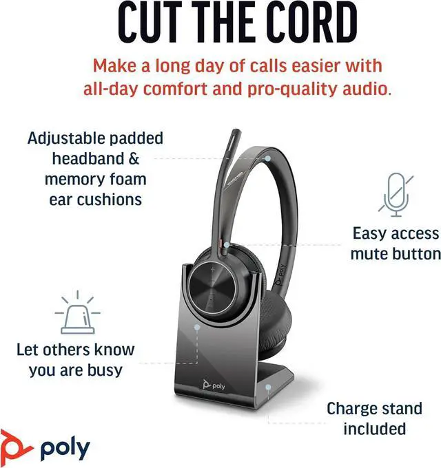 Poly Voyager 4320 UC Wireless Headset & Charge Stand (Plantronics) - Stereo Headphones w/Noise-Canceling Boom Mic - Connect PC/Mac/Mobile via Bluetooth - Works w/Teams, Zoom, & More - Amazon Exclusive