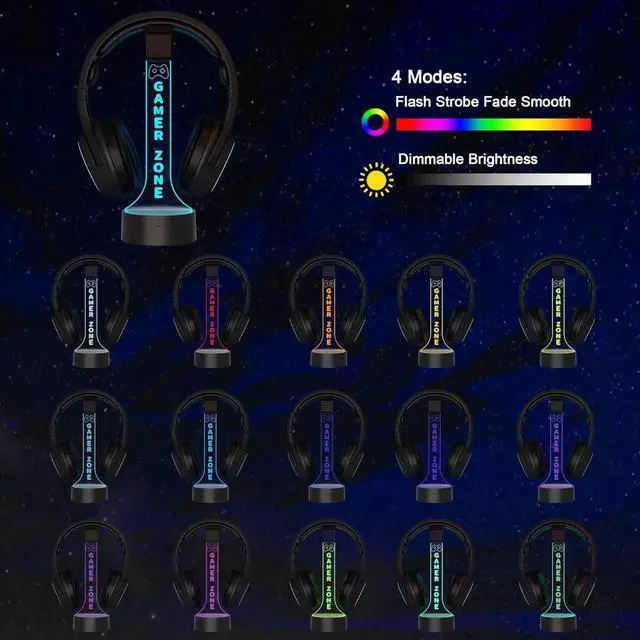 Color Lights: This light up headphone stand features 16 colors of lighting and 4 modes. The cool visual effect can create any atmosphere.