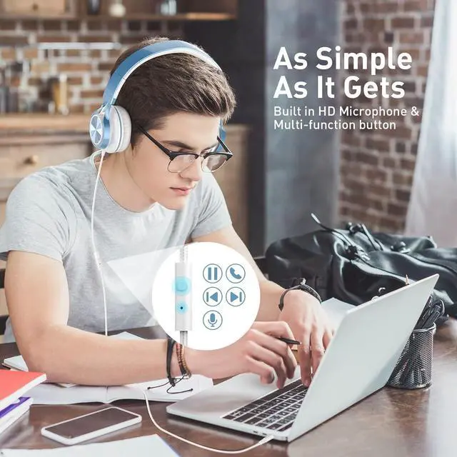 Universal Compatibility and Easy Control: With a standard 3.5mm jack, these headphones are compatible with most devices. The multi-function button on the audio cable allows for simple control, including play, pause, answer, hang-up, and track change.
