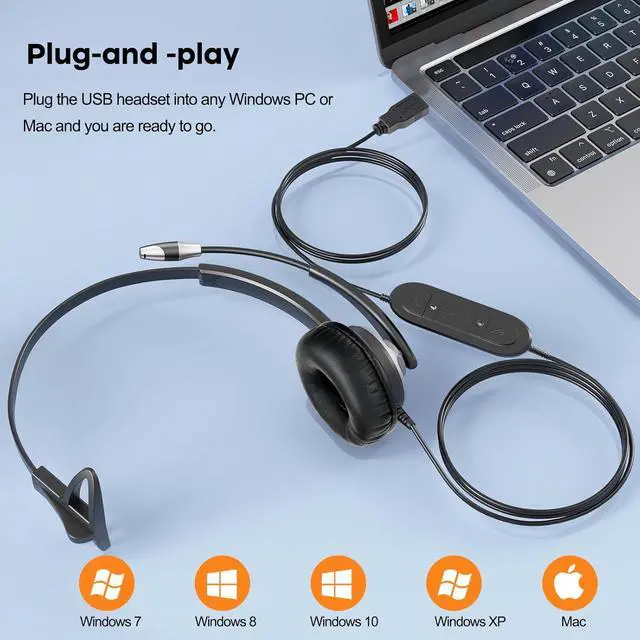 USB Headset for Computer: This corded laptop headset with microphone is compatible with all major operating systems, including Windows XP/7/8/10/11/Mac. Plus, this corded call center headset with microphone noise cancelling works seamlessly with many softphone applications. Whether you're using it for Teams, Zoom, Cisco Jabber, 3CX, Zoiper, AVAYA One X, Facetime or any other communication platform, it is compatible and delivers exceptional performance.