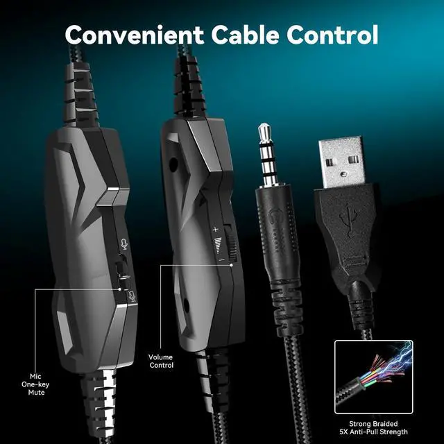 Humanised Design Soft and skin-friendly ear cushions, flexible headband with thickening pads, headset weight is only 0.77lb, lightweight and comfortable design provides you with a long-lasting excellent gaming experience.