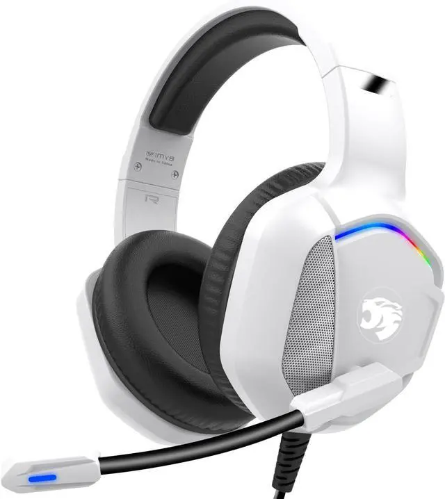 Gaming Headset with Microphone for Pc, Xbox One Series X/s, Ps4, Ps5, Switch, Stereo Wired Noise Cancelling Over-Ear Headphones with Mic, RGB, for Computer, Laptop, Mac, Nintendo (White)