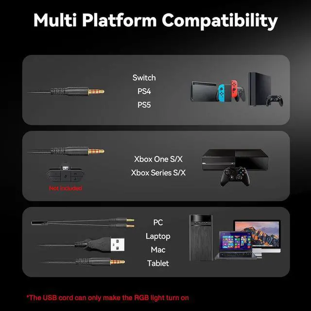 Multi-platform Compatible Gaming headset with microphone for PC, PS4, PS5, Xbox One Series X/S (older version requires adapter), Nintendo 3DS, Switch, Laptop, PSP, Tablet, iPad, Computer, Mobile Phone, 3.5mm jack device.