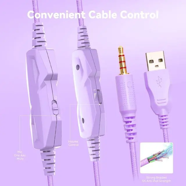 Gaming Headset with Microphone for Pc, Xbox One Series X/s, Ps4, Ps5, Switch, Stereo Wired Noise Cancelling Over-Ear Headphones with Mic, RGB, for Computer, Laptop, Mac, Nintendo (White Purple)