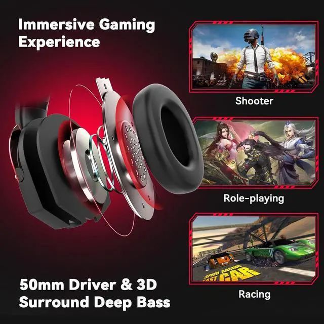 Surrounding Stereo Subwoofer Gaming headset with high power 50mm neodymium magnet drivers, greatly enhance the expressiveness and sense of depth of voice playback details, powerful sound quality provide you immersive gaming experience.
