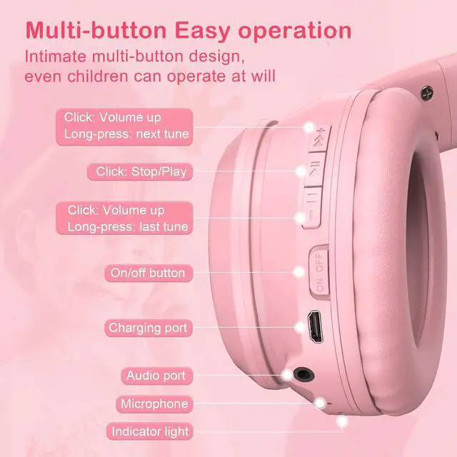 RGB Cat Ears: The cat ears are RGB backlit, and the ear-pads logo parts have RGB backlight. Light up your world with this headphones