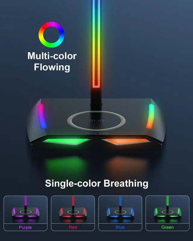RGB LightingNew bee RGB headphone stand features 7 colors of lighting modes, the cool visual effect can create any atmosphere. Press and hold for 3 seconds to turn off/on the lights.