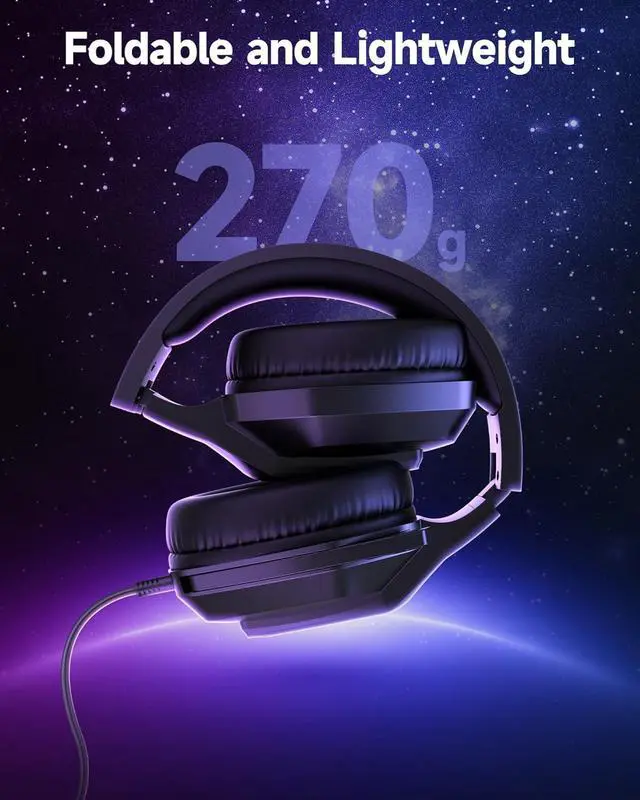 Immersive 3D Surround Sound Experience - This wired gaming headset features a powerful 50mm dynamic driver with a large PET diaphragm, delivering immersive 3D surround sound. From subtle footsteps to intense explosions, every detail is reproduced with clarity. Inline volume control and a one-touch mute make in-game adjustments fast and effortless.