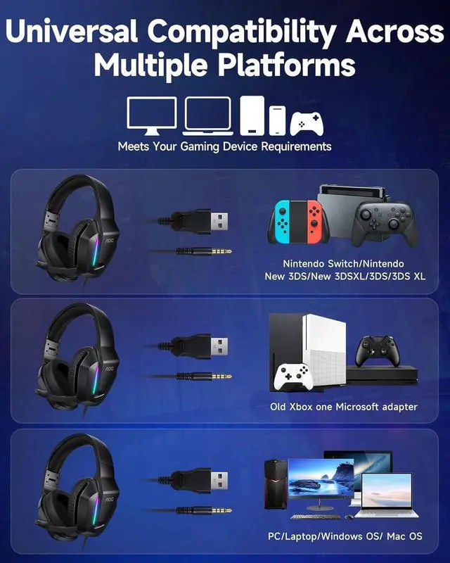 Reliable Support & User-Friendly Design - Built for everyday gaming, this wired gaming headset is designed with durability and ease of use in mind. Please note: the USB connection is used only to power RGB lighting on PC. Xbox controllers may require an additional adapter for optimal volume. On Switch, audio works normally while the microphone function is limited by the console.