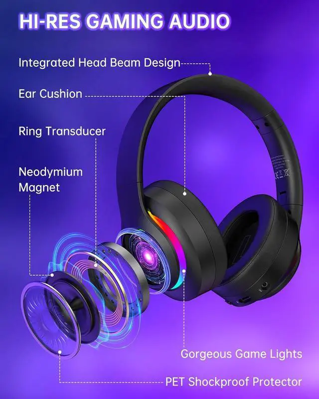 Foldable Design & RGB Lights Built with a foldable, rotating earcup and adjustable headband, this gaming headset is easy to carry and wear, making it a great gift for gamers on the go. Equipped with 50mm drivers for powerful surround sound and futuristic LED accents, this gaming headset delivers immersive audio and stunning style. Enjoy next-level gaming with these versatile wireless gaming headphones.