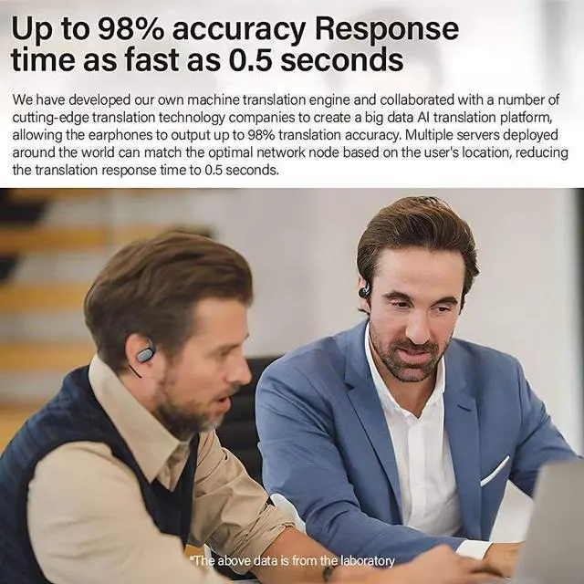 Translator Earphones is worn to speak and translate, avoiding the backand forth of traditional translation equipment Transmission, whileconformingto business distance, is more suitable for the long duration of businessmeetings Communication, allowing you to free your hands, documentpresentation, interactive dialogue.