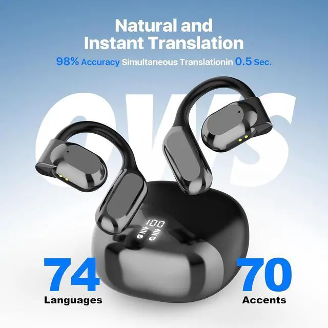 • Multi-language Translation Headset Wireless BT Binaural Simultaneous Translator Intelligent AI Earphones