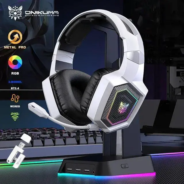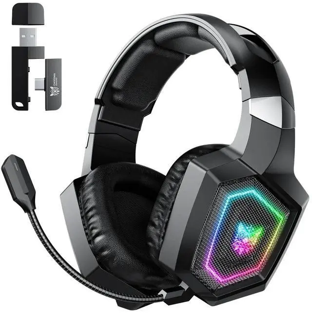 GT806 2.4GHz AUX Bluetooth 5.3 Tri-Mode Wireless RGB Gaming Headset with Detachable Microphone for PS4 PC Mobile Devices