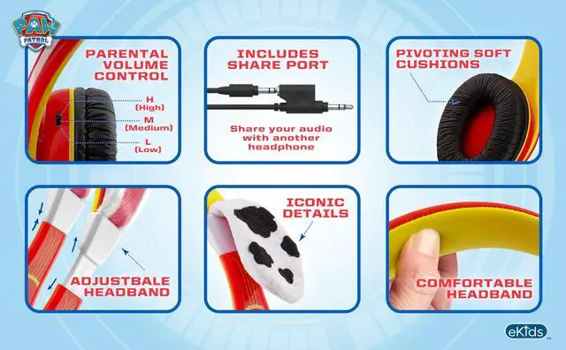 Paw Patrol Graphics: Over ear headphones feature bold and colorful graphics inspired by Marshall. This cool design looks great on any little pup!
