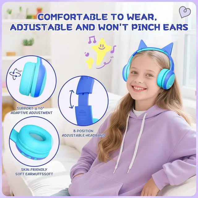 PORTABLE & FUN DESIGNThese foldable toddler headphones come with a travel pouch for easy storage. The 8-level adjustable headband grows with your child, while the detachable cat ears add a cute, playful touch. Durable, comfortable, and stylishan ideal gift for kids.