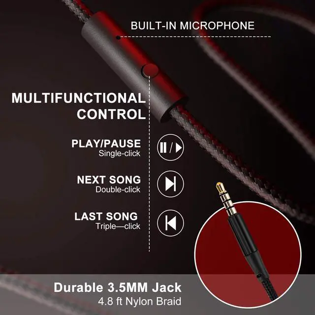 Durable & Folding DesignThese headphones with microphone are built meticulously with strong and sturdy plastic for long-lasting resilience and durability. The premium 1.5m nylon braided cord doesnt tangle or kink, making them suitable for both adults and kids. Their lightweight and foldable design make these wired headphones easy to pack and take anywhere.