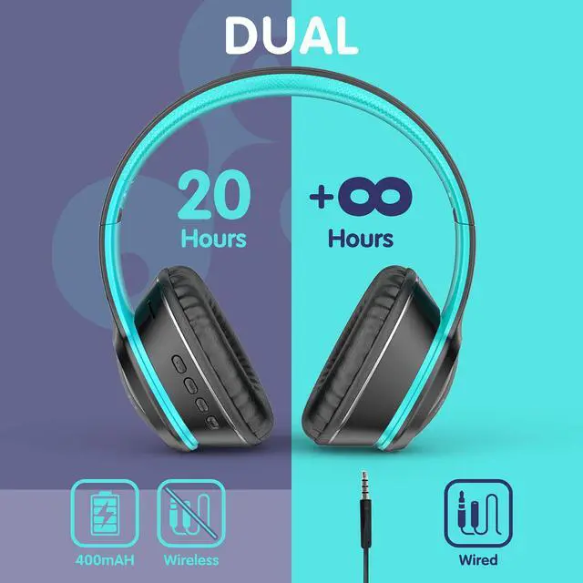 400mAh Battery & Wide CompatibilityEquipped with a 400mAh battery, these kids' wireless headphones offer up to 20 hours of operation time. They are compatible with all Bluetooth-enabled devices, including smartphones, iPads, laptops, PCs, and music players.