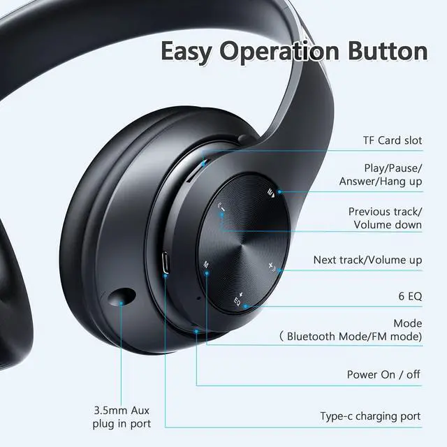 [Optimized Sound Quality with 6 EQ Modes] Equipped with 6 EQ modes, these headphones allow you to switch freely between Bass, Jazz, Voice, Rock, Pop, and Classic sounds, each providing CD-quality audio. Stay up to date with better sound effects and an enhanced listening experience.