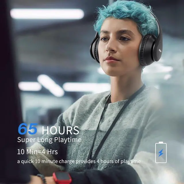 UP TO 65 HOURS PLAYTIME - These wireless headphones deliver up to 65 hours of playtime on a single charge. A quick 10-minute charge gives you up to 4 hours of playtime. This wireless headset can also easily connect to other non-Bluetooth devices via a 3.5 mm audio cable, allowing for extended listening in wired mode.