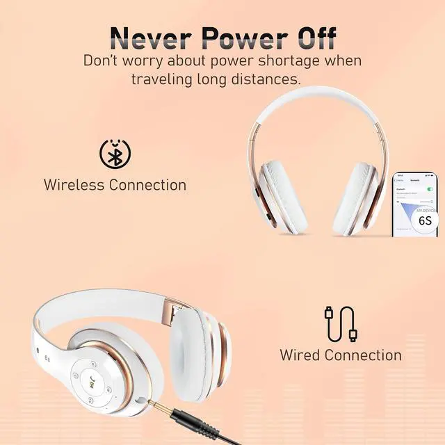 Bluetooth and Built-in Microphone - The upgraded Bluetooth chip provides a high-quality built-in microphone for clear hands-free calls and an efficient, stable Bluetooth connection. Experience true wireless freedom with these headphones. Simply long press the power button to enter pairing mode for quick connections to Bluetooth devices.