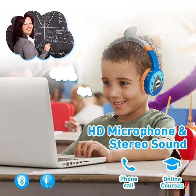 Bluetooth 5.3 & Built-In Mic: Enjoy Bluetooth 5.3 technology with these wireless kids headphones, ensuring a super-stable connection. One button controls play, pause, end, and answer phone calls. The built-in microphone provides hands-free freedom for studying, homework, being in class, or playtime.