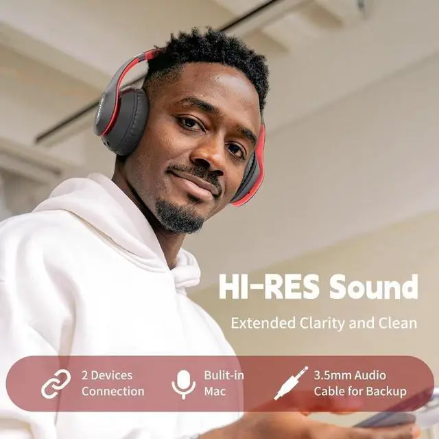 Excellent Sound & 6EQ MODESWireless Bluetooth headphones equipped with 40mm dynamic driver, which produces hi-fi stereo sound, crisp and clean, with great balanced Bassup that reduces environmental noise. Switch freely between 6 sound effects with the EQ button: Bass, pop, rock, classic, jazz, and vocal. Listening to a variety of music feels like experiencing a concert with a wide sense of space.