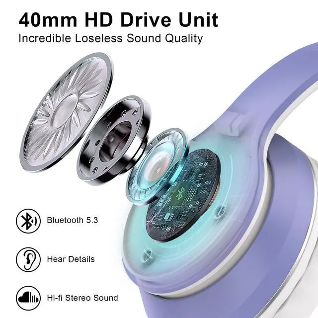 Hi-fi Stereo Sound: The high-fidelity stereo sound benefits from the 40 mm audio driver and advanced Bluetooth 5.3 chip, providing exceptionally clear sound with a full dynamic range, rich bass, and crisp mids, so you can enjoy a gorgeous deep bass and Hi-Fi stereo sound feast. Lose yourself in the music.