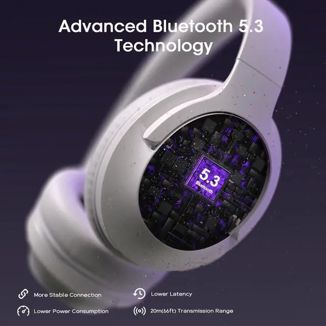 Make Crystal-Clear Calls Anywhere with ENC Microphone: Be heard perfectly, even in loud places. The ENC (Environmental Noise Cancellation) mic in these over-ear headphones actively cancels background noise, ensuring your voice comes through crisply on every call, turning chaos into clarity.