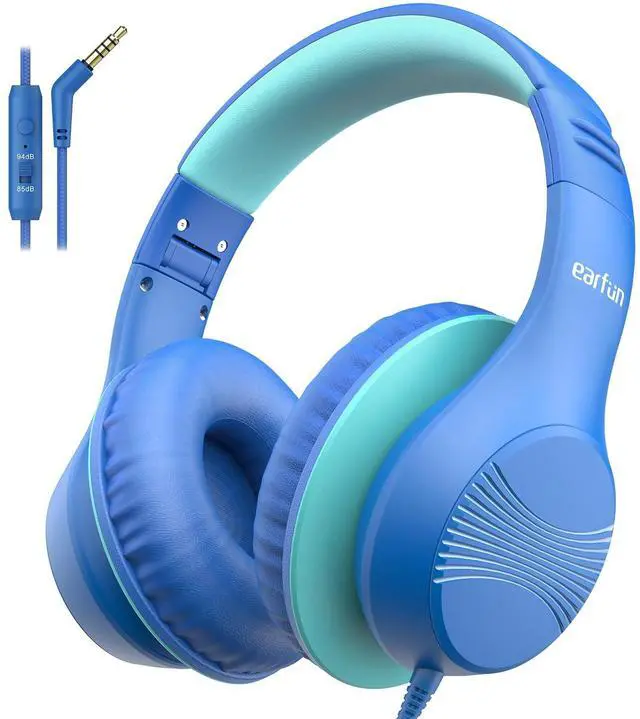 Kids Headphones, Over Ear Headphones with Microphones, 85/94dB Safe Volume Limit, HD Stereo Sound, 3.5mm Jack, Foldable Wired Headphones for School/Travel/Boys/Girls/Tablet/iPad, Blue